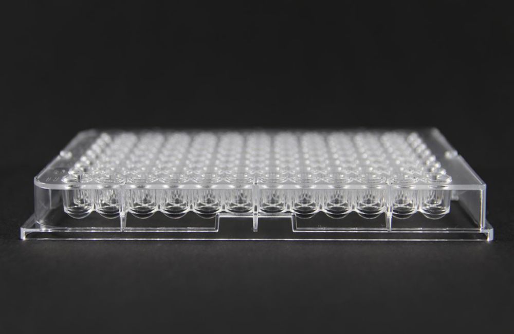 Fully compatible to all current standard-equipments (reading and washing devices). Safe stacking, no danger of slipping. Appropriate gripping surfaces at the side. Frosted surface of the plates prevents errors from extraneous light. Alpha-numerical well identification for easy sample location. Space for identification marking on the side surface.