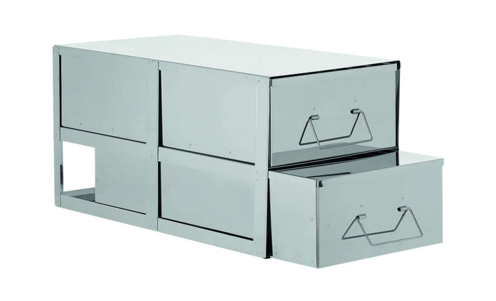 For applications where the samples are either not stored in boxes or has odd sizes. The double trays, with lid and handle on the front, will fit into any freezer.