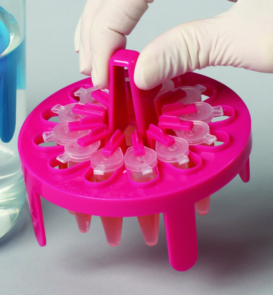 Unique tabs protect your samples from loss and contamination. Place tubes in slots and slide under tabs to keep tubes in place and caps closed when under pressure, floating or submerged. Use in water baths, ice baths or on the benchtop period.
